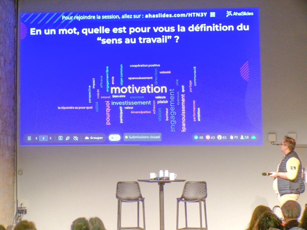 Les participants ont partagé leur vision du “sens au travail” : les mots motivation, investissement et engagement sont ressortis en tête.