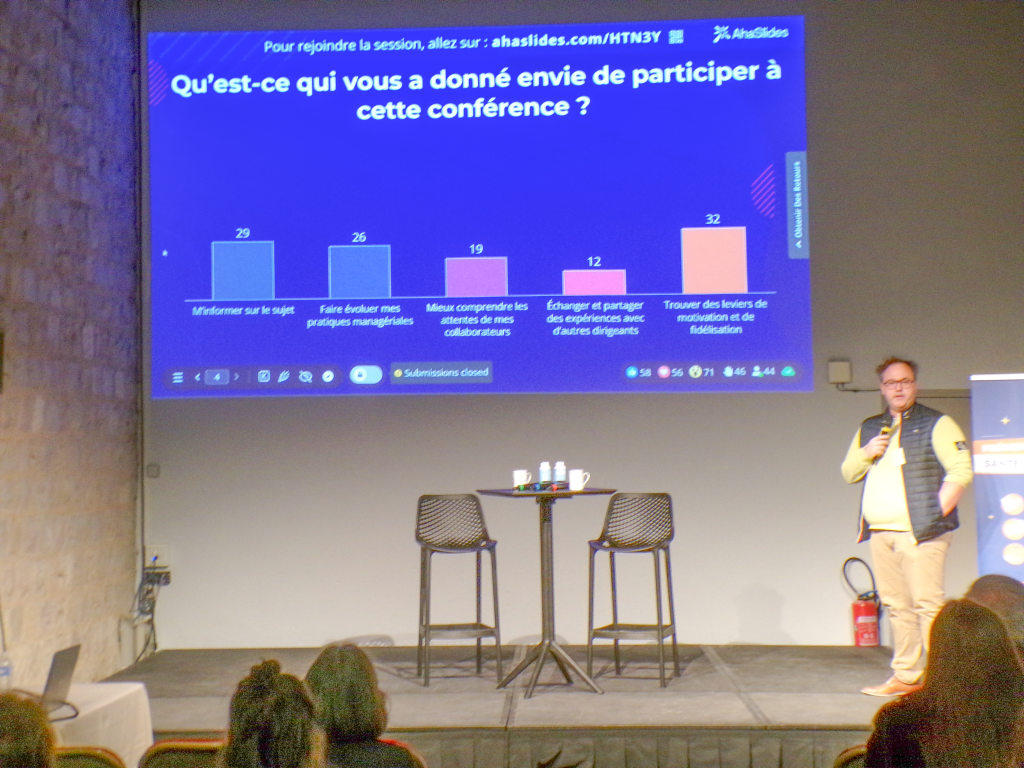 Quant à leurs motivations à participer à cette conférence, la majorité a évoqué la recherche de leviers pour motiver et fidéliser leurs collaborateurs.