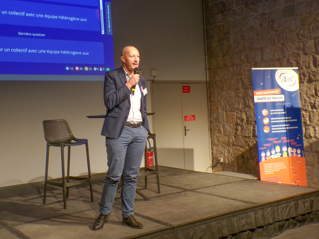 Jean-Philippe Matz, Psychologue du Travail à l’AIST 84, est intervenu pour présenter ses missions et introduire la thématique à travers un quizz interactif.